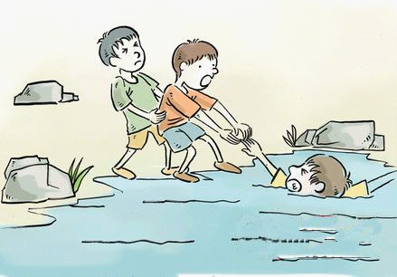 多数溺水者被救起时已处于昏迷状态 (儿童溺水2分钟就会失去意识),抢救不及时4~6分钟即死亡。 1 、下水迅速救上岸 由于孩子溺水并可能造成死亡的过程很短,所以应以最快的速度将其从水里救上岸。 若孩子溺入深水,抢救者宜从背部将其头部托起或从上面拉起其胸部,使其面部露出水面,然后将其拖上岸。 2 、排除呼吸道积水 多数溺水者被救起时已处于昏迷状态 (儿童溺水2分钟就会失去意识),抢救不及时4~6分钟即死亡。 3 、清除口鼻里的堵塞物 孩子被救上岸后,使孩子头朝下,立刻撬开其牙齿,用手指清除口腔和鼻腔内杂物,再用手掌迅速连续击打其肩后背部,让其呼吸道畅通,并确保舌头不会向后堵住呼吸通道。 4 、倒出呼吸道内积水。 方法一:抢救者单腿跪地;另一腿屈起,将溺水儿童俯卧置于屈起的大腿上,使其头足下垂。然后颤动大腿或压迫其背部,使其呼吸道内积水倾出。 方法二:将溺水儿童俯卧置于抢救者肩部,使其头足下垂,抢救者作跑动姿态就可倾出其呼吸道内积水。清理积水的同时,先要用手清除溺水儿童的咽部和鼻腔里的泥沙及污物,以保持呼吸道畅通。注意倾水的时间不宜过长,以免延误心肺复苏。 5 、水吐出后人工呼吸 对呼吸及心跳微弱或心跳刚刚停止的溺水者,要迅速进行口对口 (鼻)式的人工呼吸,同时做胸外心脏按压,分秒必争,千万不可只顾倾水而延误呼吸心跳的抢救,尤其是开始数分种。抢救工作最好能有两个人来进行,这样人工呼吸和胸外按摩才能同时进行。如果只有一个人的话,两项工作就要轮流进行,并尽快与医疗急救机构联系。