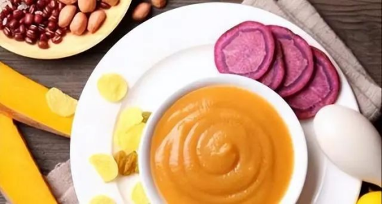早期阶段添加的辅食应是细软的泥糊状食物,逐步过渡到粗颗粒的半固体食物,当婴儿多数牙齿特别是乳磨牙出后,可给与较大的团块状固体食物。