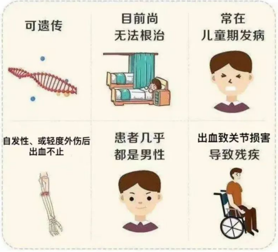 血友病是一组凝血因子缺乏导致凝血功能障碍的遗传性血性疾病,也是严重危害健康的出生缺陷疾病。常表现为自发性的出血或轻度外伤后出血不止。也被俗称为“玻璃人”