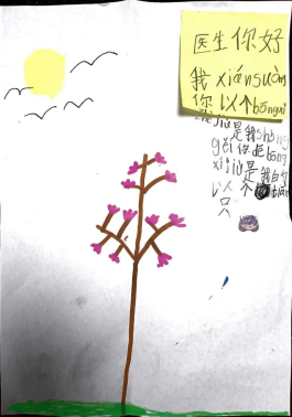 “护士阿姨,节日快乐!”2023年12月31日中午,儿科接收到4份特别的礼物——患儿亲手画的简笔画。图案虽然线条简单略显稚嫩,却充满了童真和温情。