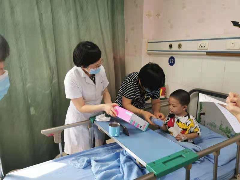9点左右,平时忙碌嘈杂的儿科病房里突然响起了欢乐的音乐,医护人员在病房装扮了五颜六色的气球,为小朋友们准备了许多小玩具,并祝他们早日康复,节日快乐。同时,在病房大厅医护人员还通过表演节目,亲子游戏的方式为小朋友们进行卫生防护知识宣教,让孩子们在轻松的氛围中学知识、懂防护、讲卫生。
