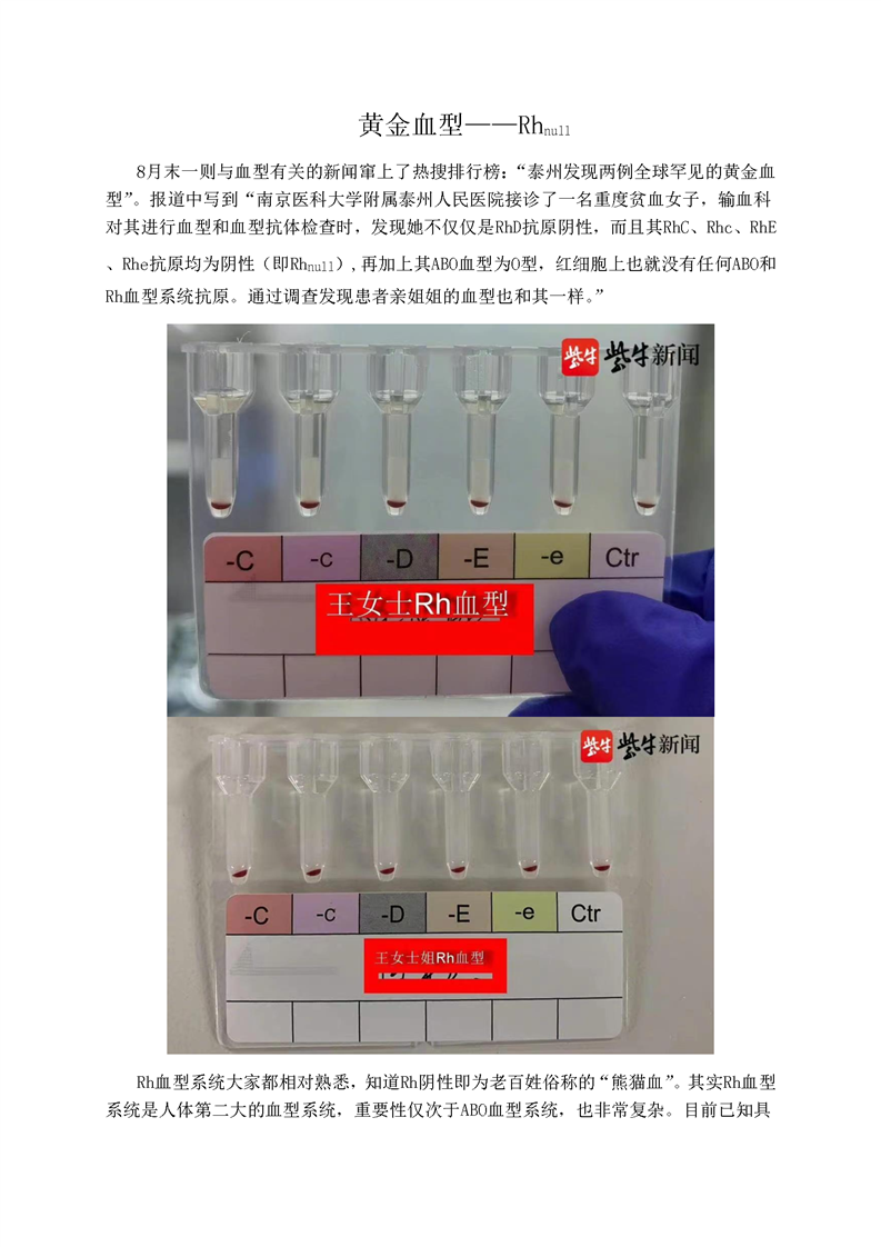 黄金血型——Rhnull