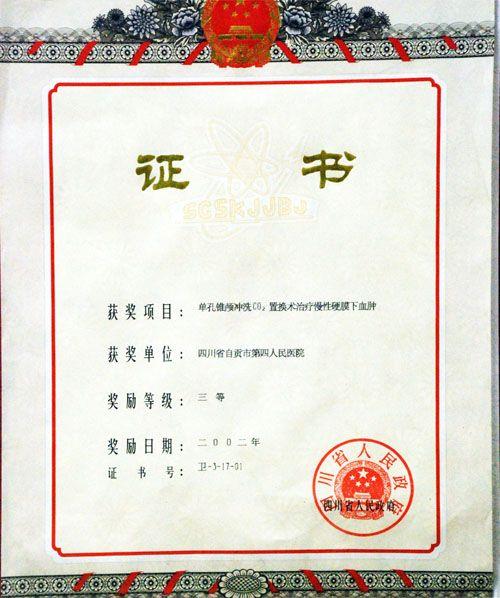 单孔纵锥颅冲洗CO2置换术治疗慢性硬膜下血肿三等