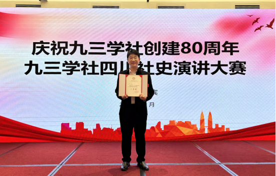 近日,为庆祝九三学社创建80周年,由九三学社四川省委员会主办的“九三学社四川社史演讲大赛”在宜宾举行。来自自贡市第四人民医院中医科的罗西倜医生作为自贡市九三学社的代表参赛,并获得一等奖。
