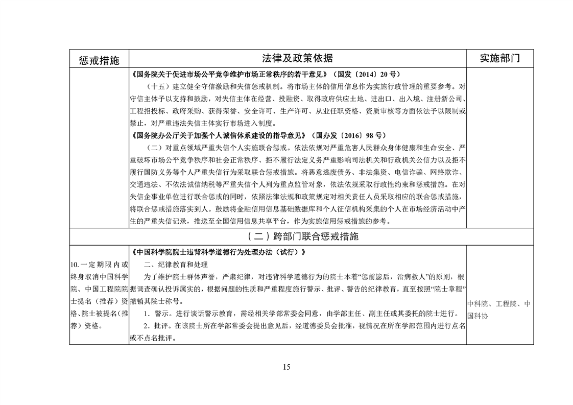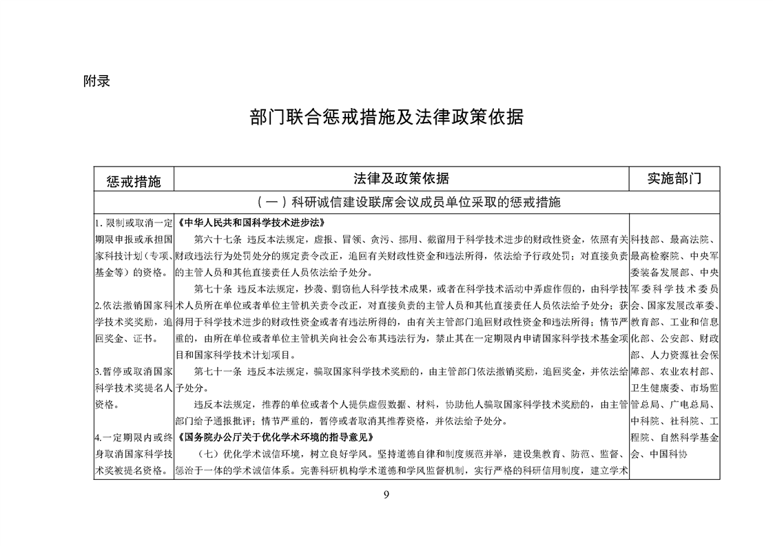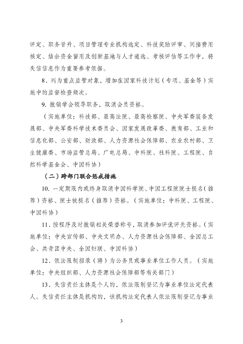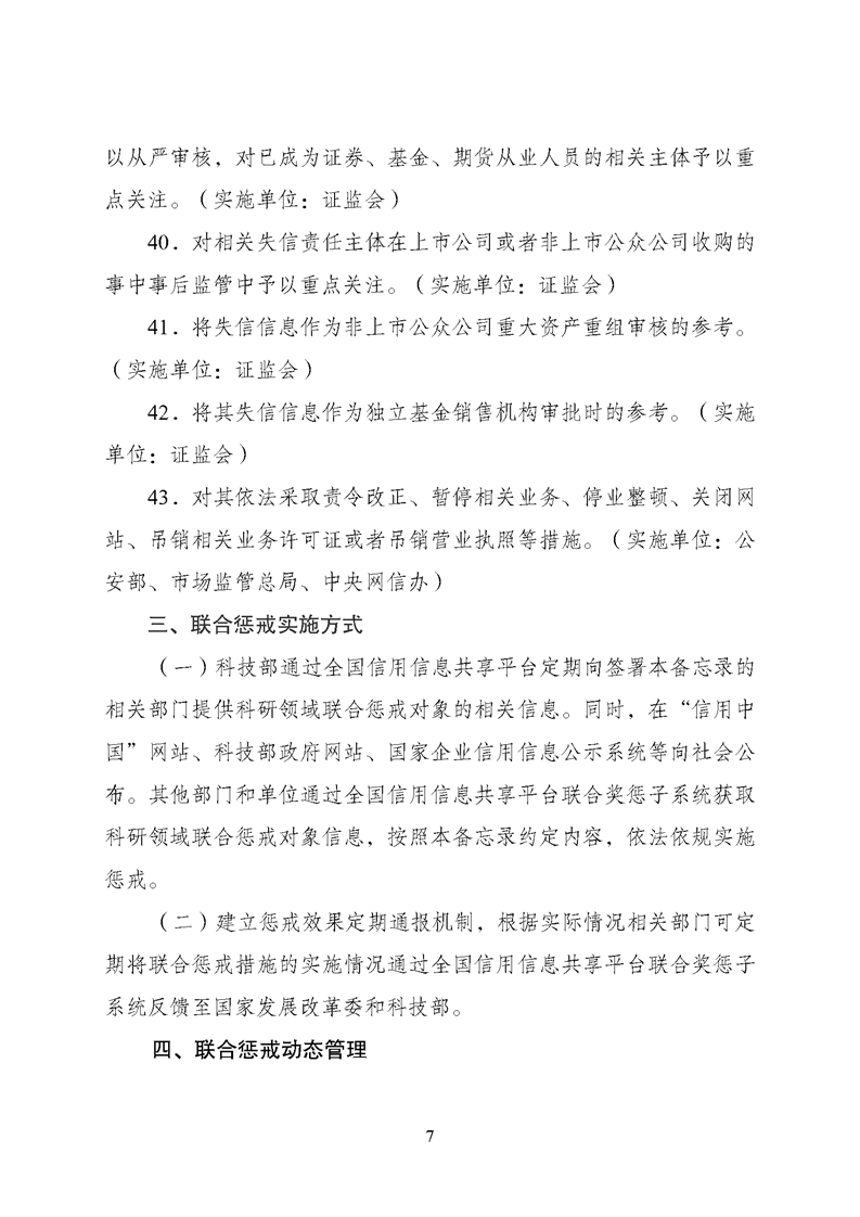 《关于对科研领域相关失信责任主体实施联合惩戒的合作 备忘录》