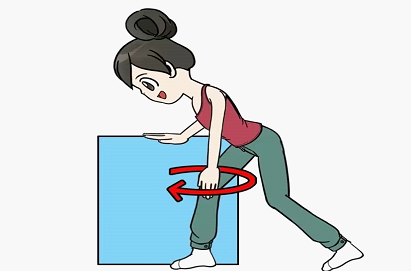 患肢自然下垂,肩关节作为顶点进行各个方向的运动。身体前屈,摆动患肢,首先是前后方向,没有疼痛的情况下增加左右方向,最后增加顺时针划圈动作,逐步增加活动范围,但不超过90°。