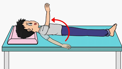 仰卧位,术侧肩关节外展在30°-45°,术侧主动进行前屈运动,每日5-10次,逐步增大锻炼活动度,运动时避免引起明显疼痛。