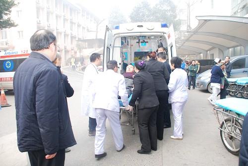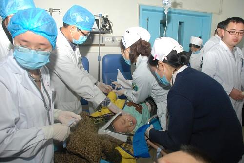 出诊医务人员在车祸现场对伤员病情作了初步评估,并进行了必要处置,按病情轻重分批将伤员转送至医院急诊科治疗。在急诊科抢救室和急诊科大厅临时抢救点,医务人员紧张有序地对伤员进行了初步诊治。对于病情较重者,医院组织相关专家进行了现场会诊,并做床旁B超等检查,处理后及时转往相关科室进一步治疗。经过短短一个多小时,完成了伤员的初步处置工作。目前,医院共收治伤员34名,其中两名收入EICU,两名收入神经外科。其余病人则将根据随后的检查结果决定治疗方案。
