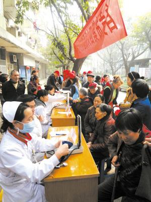 近日,市四医院青年志愿者与理工学院“生工人”志愿者在自流井区富台山社区联合举办“青年志愿者服务进社区”活动。图为医护人员义诊现场。 朱玮玲 摄(自贡日报