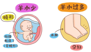 羊水过多 妊娠期间羊水量超过2000ml,称为羊水过多(polyhydramnios)。发生率为0.5%~1%。羊水量在数日内急剧增多,称为急性羊水过多;在数周内缓慢增多,称为慢性羊水过多。可能与胎儿畸形、多胎妊娠、妊娠合并糖尿病等因素有关。 羊水过少 妊娠晚期羊水量少于300ml者,称为羊水过少( oligohydramnios )。羊水过少的发生率为0.4%~4%。羊水过少主要与羊水产生减少或羊水外漏增加有关。部分羊水过少原因不明。可能与胎儿泌尿系统畸形、胎盘功能减退、胎膜早破等因素有关。