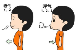 呼吸训练:训练内容主要是从腹式呼吸和缩口呼吸两方面进行。 腹式呼吸:采取仰卧或舒适的坐姿,可以把一只手放在腹部肚脐处,放松全身,先自然呼吸,然后吸气,最大限度地向外扩张腹部,使腹部鼓起,胸部保持不动。 呼气时腹部自然凹进,向内朝脊柱方向收,胸部保持不动。最大限度地向内收缩腹部,把所有废气从肺部呼出去。