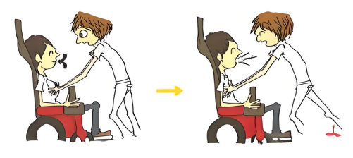 8.咳嗽训练:治疗者在患者的后方两腋下将双手向前交叉于患者胸腹部,令患者深吸气后屏气,然后猛然向外呼气,此时置于患者胸腹前的双手用力向内上方挤压,帮助患者增加胸腹部压力,完成咳嗽动作。