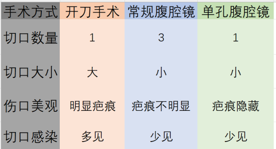 什么是单孔腹腔镜阑尾手术?时间:2025-10-15 浏览量:3684 来源:自贡市第四人民医院 作者:急性阑尾炎是普外科最常见的急腹症之一,目前治疗方式以腹腔镜手术为主,常规的腹腔镜阑尾切除需要在人体做3个切口(5-10mm),而单孔腹腔镜阑尾手术是指通过1个切口进入腹腔,置入腹腔镜器械进行阑尾切除的手术操作。 切口部位: 经脐做一个2-3 cm的切口,置入腹腔镜的器械完成阑尾切除,之所以选择肚脐,是因为肚脐是人体天然的疤痕结构。在这里进行手术不会增加额外的疤痕,有利于美观。在单孔腹腔镜手术医生眼里,肚脐好比螺母,旋开它就可以进行“产品维修”了。 哪些人适合做单孔腹腔镜阑尾手术?哪些人不适合? 适应症:初次发作、发病时间不长的非复杂性急性阑尾炎 禁忌症:反复发作的慢性阑尾炎、伴有阑尾周围脓肿的患者、既往曾行腹腔内手术 单孔腹腔镜手术有哪些优点? 微创性 通过肚脐进入腹腔完成手术,切口少,恢复快,术后无需拆线。 美容效果 脐部切口长度2-3cm,愈合形成疤痕由于脐部褶皱的覆盖,术后瘢痕不明显,更具有美观性。 减轻疼痛 切口数量的减少,术后腹壁切口的疼痛会明显减轻。 易于取标本 肚脐切口被撑开后直径可以达到3 cm,使得切除后的阑尾标本更容易取出,降低因挤压阑尾造成切口感染的风险。 单孔腹腔镜手术有哪些缺点? 增加手术难度 在单孔腹腔镜手术中,由于所有的操作器械都经过单一孔道进入,操作空间狭小,器械之间相互交叉干扰,容易打架,即所谓“筷子效应”。尤其是镜下缝合操作,多数时候只能靠单手进行。 对术者要求较高 由于操作器械常常与镜头处于同一平行线上,常规腹腔镜的手术三角区消失,需要手术者重新感觉器械的位置和解剖的深度,操作精度下降。术中器械也容易遮挡镜头,有时为了兼顾器械的操作,镜头要做适当的让步,难以获得最佳的手术视野。因此,单孔腹腔镜对手术者的技术和熟练程度要求更高,难度更大,手术时间更长,这在一定程度上也限制了单孔腹腔镜手术的广泛应用。 阑尾切除手术方式对比