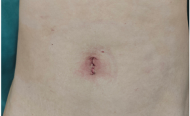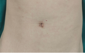 单孔腹腔镜阑尾切除患者术前vs术后:脐部疤痕几乎不可见。